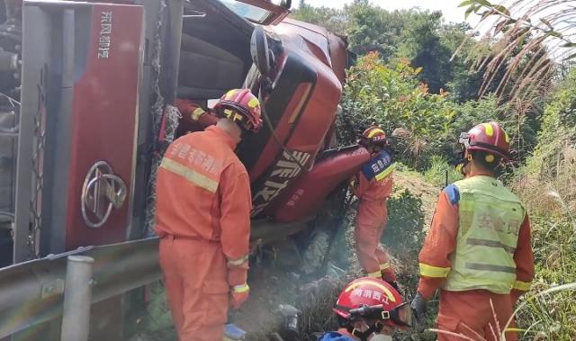转载自赣州:大货车撞护栏侧翻 消防紧急施救-江西省消防救援总队