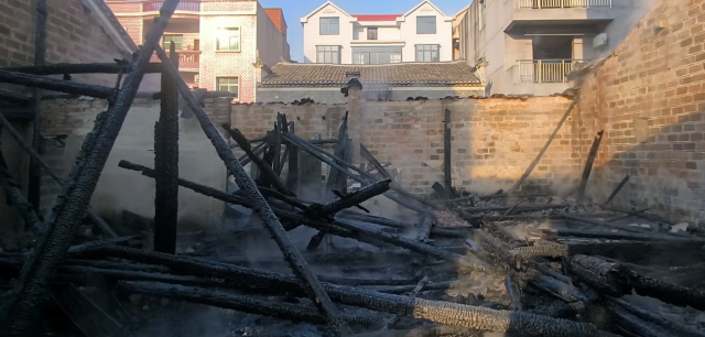 消防救援人员到达现场后,发现起火部位为村中一单层老房屋,火势正在猛烈燃烧,房梁已被烧塌,随时可能危及周边房屋。见此情况,指挥员立即组织消防救援人员铺设水枪阵地,架设两支枪对火势进行处置。15时2分,火势基本被控制,消防救援人员逐步清理内部杂物,防止火势复燃。15时42分,现场处置完毕,消防救援人员收整装备器材返回。