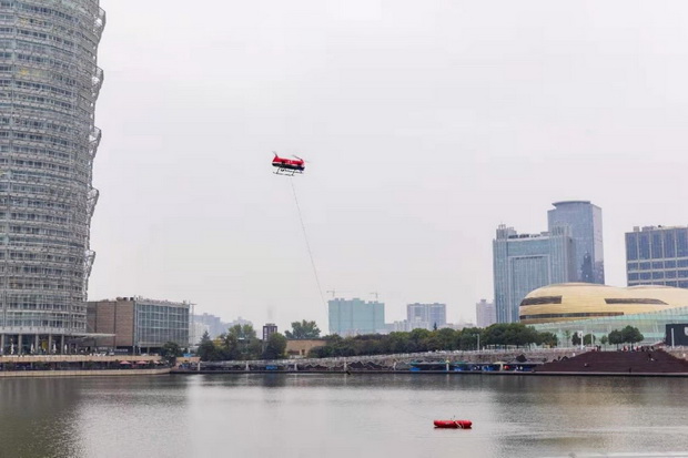我国是地质灾害高发国家,在地震、洪水、泥石流等大型灾害事故抢险救援中,现有消防无人机受载荷小和滞空时间短的限制,其应用多局限于现场视频侦察和通信信号中继传输,缺少可长距离进行物资器材空中输送和抢险救援作业的装备。该项目研发的另一项成果——猎鹰无人机抢险救援综合装备填补了这个空白。该装备通过搭载多种抢险救援模块,可在复杂环境人员被困场景下执行水域、山岳救援任务,可实施野外高空广域照明,可在大型灾害事故道路阻隔场景下执行多架次运输和投放任务,最大载重量达到115KG,模块化救援装置操作便捷、组合灵活,适应多种救援场景,实现了消防救援队伍空中物资运输的自我保障。
