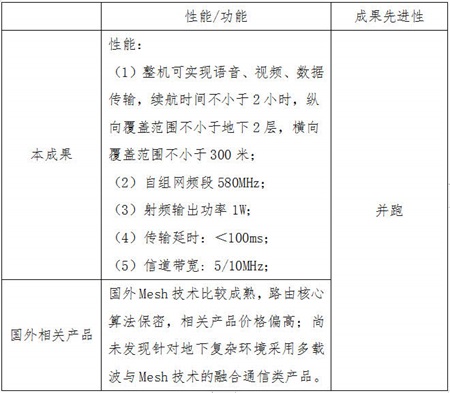 该成果依托公安部技术研究计划项目《地下建筑应急通信技术研究及装备研制》(项目编号:2015JSYJC09),针对地下建筑环境消防应急通信不畅的问题,研究了多载波与Mesh融合通信、通信链路可视化等技术,研制了新型地下应急通信装备,该装备主要由单兵采集传输终端、MESH通信中继和指挥显示终端等3部分组成,采用多载波与自组网融合通信技术,可有效增强地下复杂建筑环境下无线信号的纵向组网能力及横向覆盖效果,采用可视化链路监测技术,解决了组网设备现场部署位置优化选取的问题,实现了地下建筑环境灭火救援过程中的音视频可靠传输,且具有防护性能好、通信稳定性高、使用操作实用性强等特点,为消防部队开展地下通信提供有效技术手段。