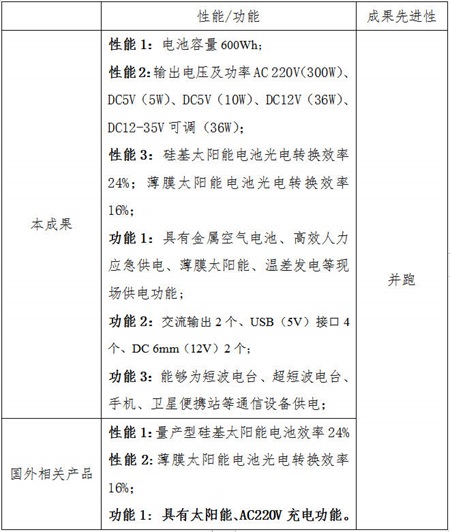 该成果依托公安部应用创新计划项目《消防通信装备现场应急供电装置研制》(项目编号:2014YYCXSYXF066),研究适合重特大灾害事故现场应用的无燃料、自主供电技术,研发金属空气电池、高效人力应急供电、薄膜太阳能、温差发电等应急供电装置,解决救援现场应急通信装置现场供电难题。