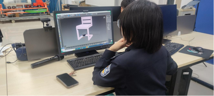 会上,首先大家交流了近两周的自学内容,对于遇到的难点和常用操作进行了分析讨论,得出共性难点的问题主要包括桌椅圆润度的设计、拼凑化的实现及多边形、卡线和圆角的使用,针对上述问题大家展开讨论,并依次给出了相应的解决方案。接着,会议进入作品展示环节,同学们依次展示了自己的作品,并分享了设计原理和设置参数,同时共享指出模型可以从三视图入手,开启对齐功能选项,调整捕捉点,从而将俯视图中的模块移动到相应位置等。交流中大家集思广益,并针对建模学习提出了自己的建议。最后,大家以匿名投票的方式选出祝文仪同学的作品为最优。