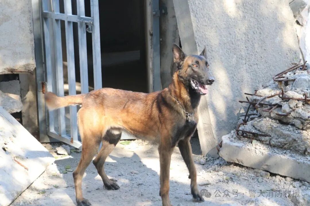 场景模拟演示:在狭小的模拟废墟中,搜救犬“麦克”如箭冲入现场,敏锐锁定目标并吠叫示警;搜救犬“杰克”随即再次确认位置,双重验证下“被困者”成功获救。