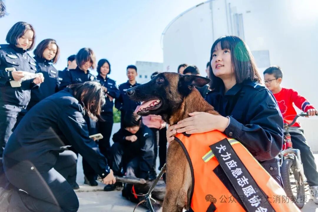 同学们纷纷举起手机记录美好瞬间,或与搜救犬并肩合影,或邀请训导员一同入镜,笑容灿烂。大家表示,能近距离接触搜救犬并合影十分有意义,不仅认识到它们在救援中的重要作用,也感受到与训导员的深厚情谊。轻松愉快的互动中,大家对搜救犬的习性、训练与应用有了更深入了解,进一步激发了对紧急救援工作的热情与关注。